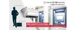 Der Intenta S2100 security kommt zur vollautomatischen Raumüberwachung und Notfallerkennung zum Einsatz. Er erkennt selbstständig Personen- und Objekte und kann durch intelligente Szeneninterpretation zur Anwesenheits- und Verhaltensanalyse sowie zur Personenzählung in Bereichen mit erhöhten Sicherheitsanforderungen eingesetzt werden. „Die Anwesenheitsanalyse in Finanzinstituten ist ein wachsendes Einsatzgebiet bei unseren Kunden. Der Sensor meldet sofort unerwünschte Übernachtungsgäste im Foyer oder verdächtige Anwesenheiten zu unüblichen Tageszeiten. Aber auch plötzliche Menschenansammlungen, zurückgelassene Gegenstände oder gestürzte Personen werden erkannt. Je nach Anwendungsfall wird bei Eintreten eines bestimmten Szenarios automatisch ein Alarmsignal abgesetzt - zum Beispiel direkt an den Wachservice, der dann sofort die Überwachungsbilder kontrollieren kann, um rechtzeitig die Polizei zu alarmieren. Attacken auf SB-Filialen können so schneller erkannt oder unter Umständen sogar vereitelt werden. Auch eine rechtzeitige Sperrung der Filiale zum Schutze von Passanten ist so einfacher zu realisieren“, erklärt Dr. Fardi.