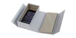 Daraufhin nimmt der Geschäftsführer Kontakt zu Streiff & Helmold auf. INOTEC aus Salzgitter verbindet eine 25-jähre Partnerschaft mit den Braunschweiger Spezialisten für hochwertige Verpackungen. Eine fertige Lösung von der Stange gab es zwar nicht, aber das Problem wurde analysiert und die Entwicklungsabteilung konstruierte eine elegante Buchdeckenverpackung mit Magnetverschluss, die sich vollautomatisch produzieren lässt. Diese wurde anschließend mit Alufolie ausgekleidet. Die folgenden Tests verliefen nicht befriedigend. Offenbar verhinderten die „undichten" Kanten eine wirkungsvolle Abschirmung. Es kam immer wieder zu Funkverbindungen. Parallel wurde die Verpackung testweise auch zur Unterdrückung von Handy-Strahlung eingesetzt. Auch bei diesem Szenario versagte die Kombination aus Vollpappe und Alufolie.