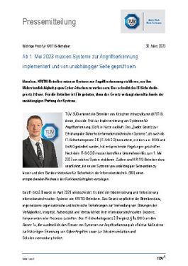 TÜV SÜD erinnert die Betreiber von Kritischen Infrastrukturen (KRITIS) daran, dass die Frist zur Implementierung von Systemen für Angriffserkennung (SzA) in Kürze ausläuft. Das „Zweite Gesetz zur Erhöhung der Sicherheit informationstechnischer Systeme“, oft auch als IT-Sicherheitsgesetz 2.0 (IT-SiG 2.0) bezeichnet, mit dem u.a. BSIG und EnWG geändert wurden, hat entsprechende Regelungen geschaffen. Nach dem IT-SiG 2.0 müssen betroffene Unternehmen bis zum 1. Mai 2023 ein solches System etablieren. Zudem sind KRITIS-Betreiber dazu verpflichtet, die neuen Systeme von unabhängiger Seite prüfen zu lassen und dem Bundesministerium für Sicherheit in der Informationstechnik (BSI) einen entsprechenden Nachweis der Funktionstüchtigkeit vorzulegen.