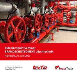 Würzburg, 24.05.2023 (PresseBox) - Am 21. und 22. Juni 2023 findet in Nürnberg das jährliche bvfa-Kompakt-Seminar BRANDSCHUTDIREKT Löschtechnik statt. Die Veranstaltungsreihe des bvfa – Bundesverband Technischer Brandschutz e.V. wird im Rahmen der Fachmesse FeuerTRUTZ durchgeführt und bietet Gelegenheit zum Austausch über Innovationen im anlagentechnischen Brandschutz.