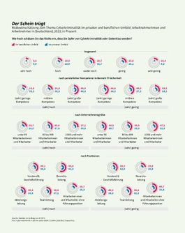 Bochum, 07.12.2023 (PresseBox) - Zwei von fünf deutschen Arbeitnehmerinnen und Arbeitnehmern schätzen das Risiko, Opfer von Cyberkriminalität oder Datenklau zu werden, als gering bis sehr gering......