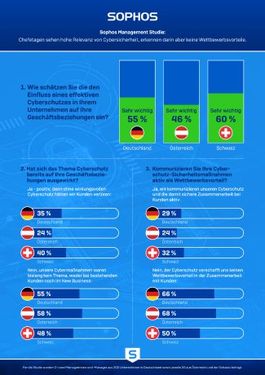 Ipsos hat im Auftrag von Sophos 201 C-Level-Managerinnen und -Manager aus Handel, Dienstleitung und verarbeitendem Gewerbe in Deutschland sowie jeweils 50 in Österreich und der Schweiz zum Thema IT-Sicherheit in ihren Unternehmen befragt.