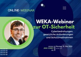 Im Zentrum des WEKA-Webinars zur OT-Sicherheit steht die Frage, wie Unternehmen ihre OT-Systeme wirksam gegen wachsende Bedrohungen schützen und gleichzeitig neue gesetzlichen Vorgaben wie der NIS2-Richtlinie und dem Cyber Resilience Act (CRA) erfüllen können. Der OT-Sicherheitsexperte Jens Cordt vom Bundesamt für Sicherheit in der Informationstechnik (BSI) gibt hier fundierte Einblicke in die Bedrohungslage und zeigt konkrete Handlungsoptionen für Unternehmen auf.