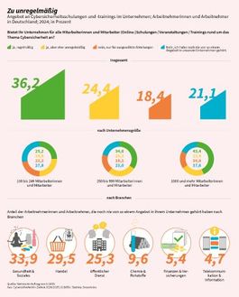 Die Studie zeigt auch: Je größer das Unternehmen, desto eher gibt es regelmäßige Trainings. In Organisationen mit über 1.000 Beschäftigten erhalten mehr als 43 Prozent der Mitarbeitenden regelmäßig Schulungen. In kleineren Unternehmen mit 100 bis 249 Mitarbeitenden berichtet nur jeder vierte Befragte von wiederkehrenden Trainings.
